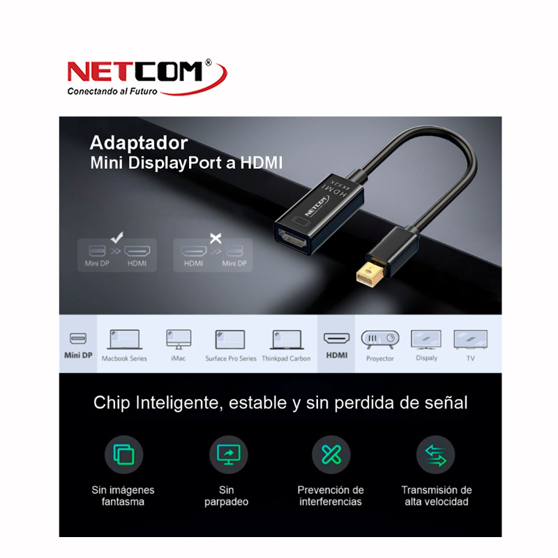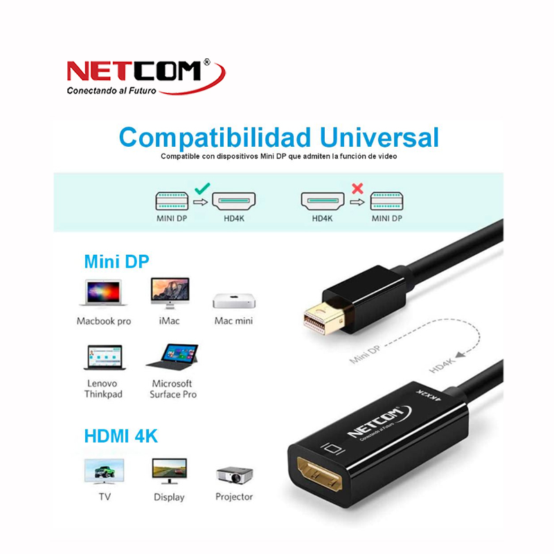 CABLE ADAPTADOR DE MINI DISPLAYPORT DP MACHO A HDMI HEMBRA ULTRA HD 4K 60HZ NETCOM