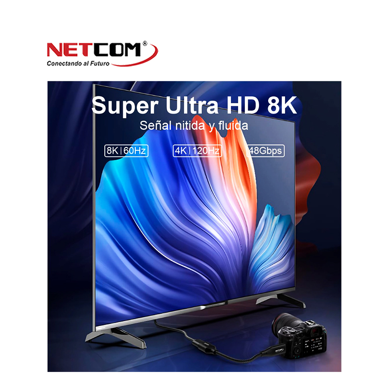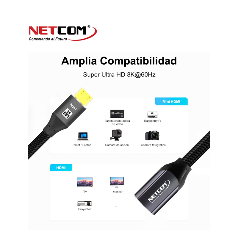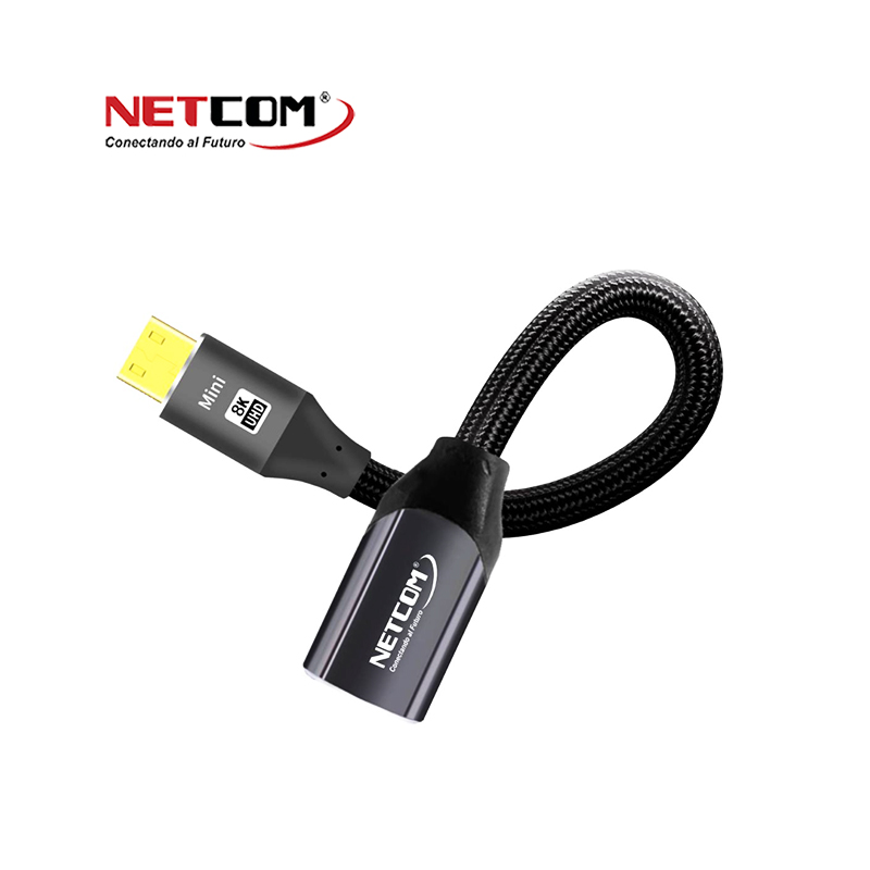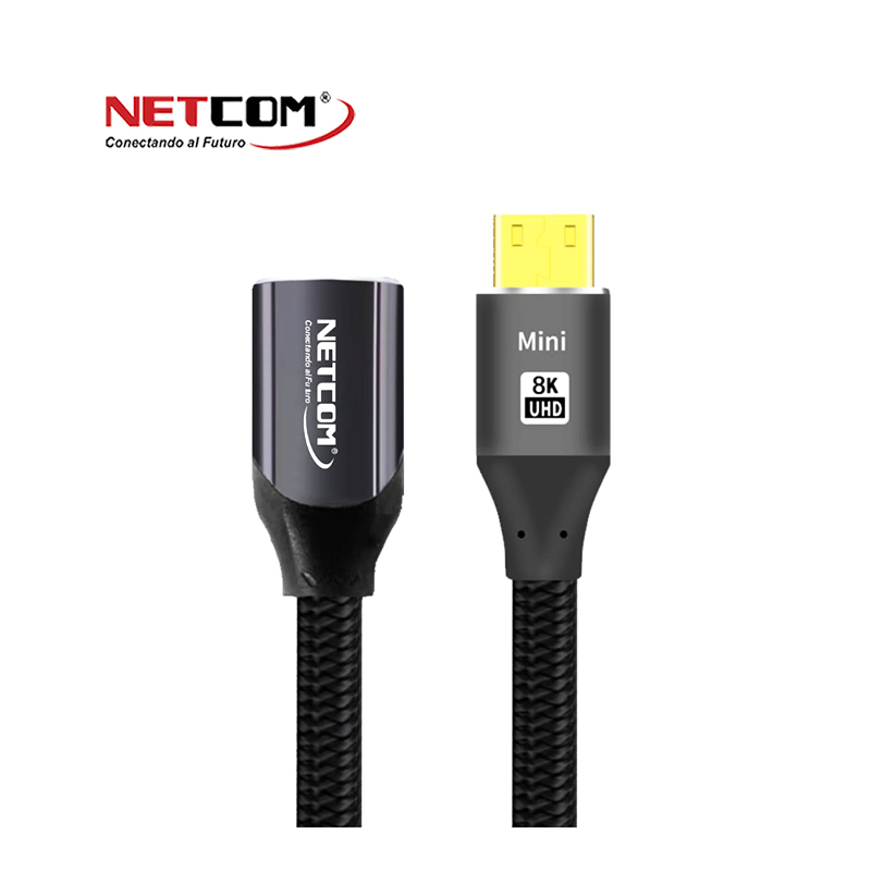 CABLE ADAPTADOR DE MINI HDMI MACHO A HDMI HEMBRA 2.1 48GBPS ULTRA HD 8K A 60HZ Y 4K A 120HZ CON CONECTORES DE ALUMINIO NETCOM