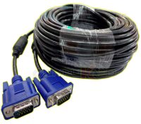 LONGITUD: 50 METROS PRESENTACION: EN BOLSA SIMPLE.COLOR CABLE: NEGRO COLOR CONECTORES: AZULES, DE 15 PINES MACHO EN CADA EXTREMO.Cables blindados para dar una clara y nítida imagen, Tiene filtros en cada extremo contra interferencias.Mostrará en los monitores en distancias más largas.CON BLINDAJE DOBLE, estos cables de extensión VGA tienen núcleos de ferrita (Filtro) en el cada extremo para supresión de ruido