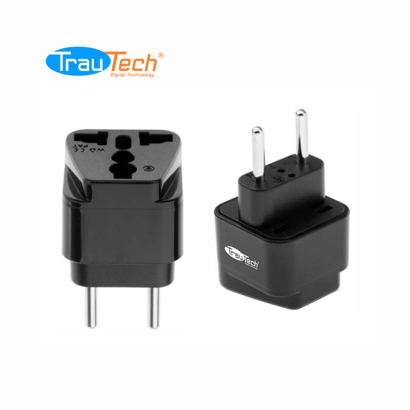 Adaptador Compacto de Multi-enchufe Universal (hembra) a Enchufe 2 Clavijas Redonda (macho).