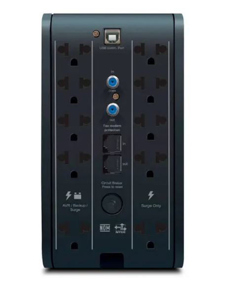 5 tomas con regulación AVR y respaldo de batería + 5 tomas con supresión de picos