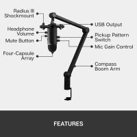 Compass es un brazo de micrófono de primera calidad con resortes internos y administración de cables incorporada, ideal para aplicaciones de transmisión como transmisión de juegos, podcasting, voz en off y más. Diseñado para Yeti, Compass presenta un funcionamiento suave y silencioso y un aspecto sofisticado en la cámara.