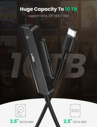 El cable adaptador de USB-C a SATA III permite un acceso rápido a SSD y HDD de 2,5″, y ofrece una forma sencilla de arrancar discos duros antiguos, actualizar el almacenamiento del PC, clonar discos duros, recuperar y recuperar datos de portátiles retirados y ampliar el almacenamiento. Usted está libre de la apertura de un panel de la computadora para la instalación problemática. Más efectivo y conveniente.