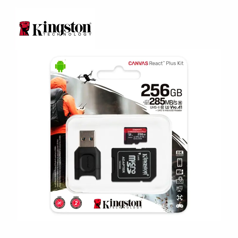 Las tarjetas microSD Canvas React Plus de Kingston se caracterizan por un rendimiento fiable y de alta calidad para creativos profesionales que pueden filmar extraordinarios vídeos de 4K/8K y tomar fotografías de alta resolución sin problemas de cuadros y lentas velocidades. Diseñadas con arreglo a las normas UHS-II y las avanzadas categorías de velocidades U3 y V90, las tarjetas microSD Canvas React Plus son compatibles con los drones de alta definición y las cámaras de acción profesionales más avanzados.