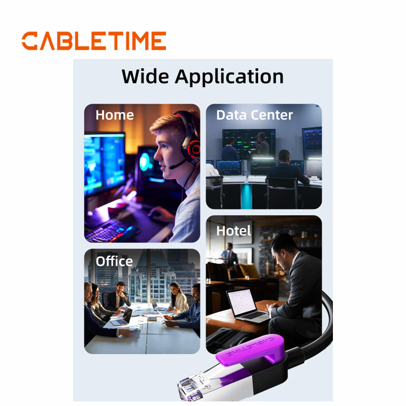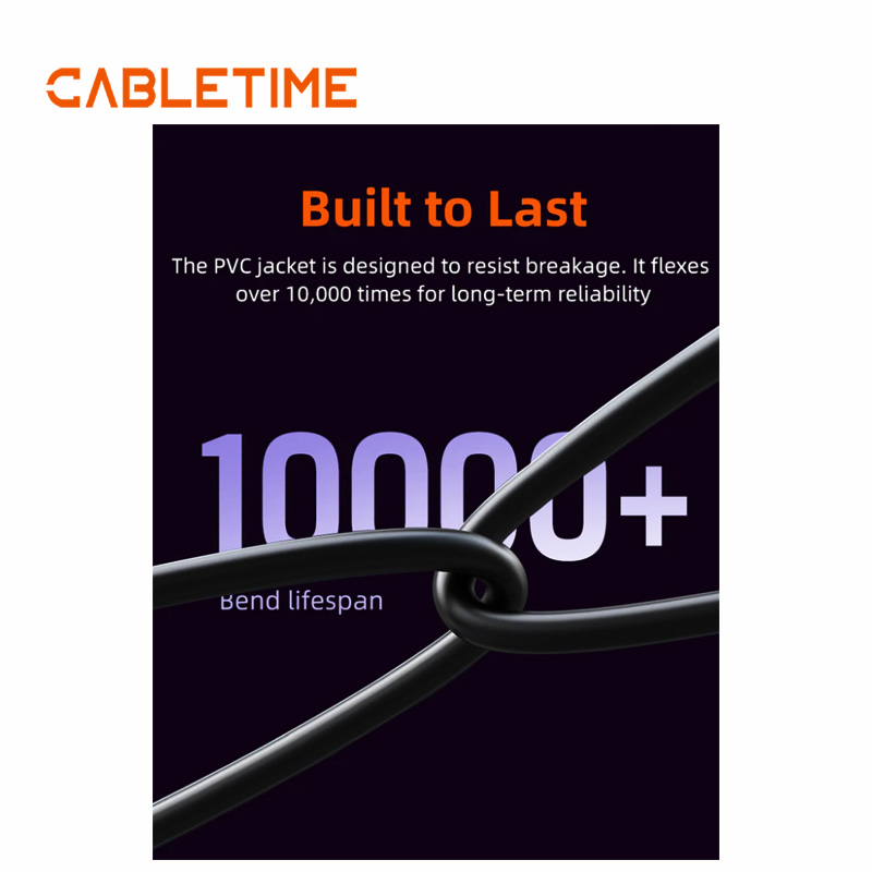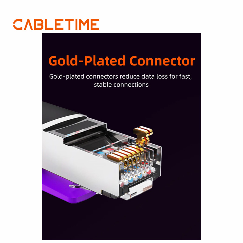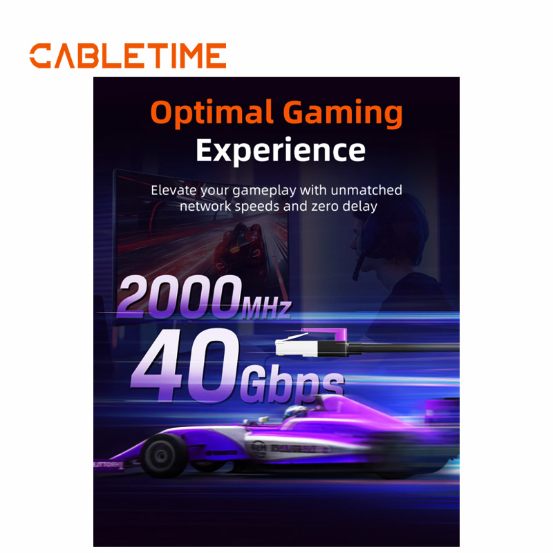 Diseñado para los jugadores, el cable Cabletime Cat8 Ethernet proporciona una conexión de baja latencia y sin retraso, asegurando una experiencia de juego receptiva y suave. Perfecto para configuraciones de juegos PS5, PS4, Xbox y PC de alto rendimiento.