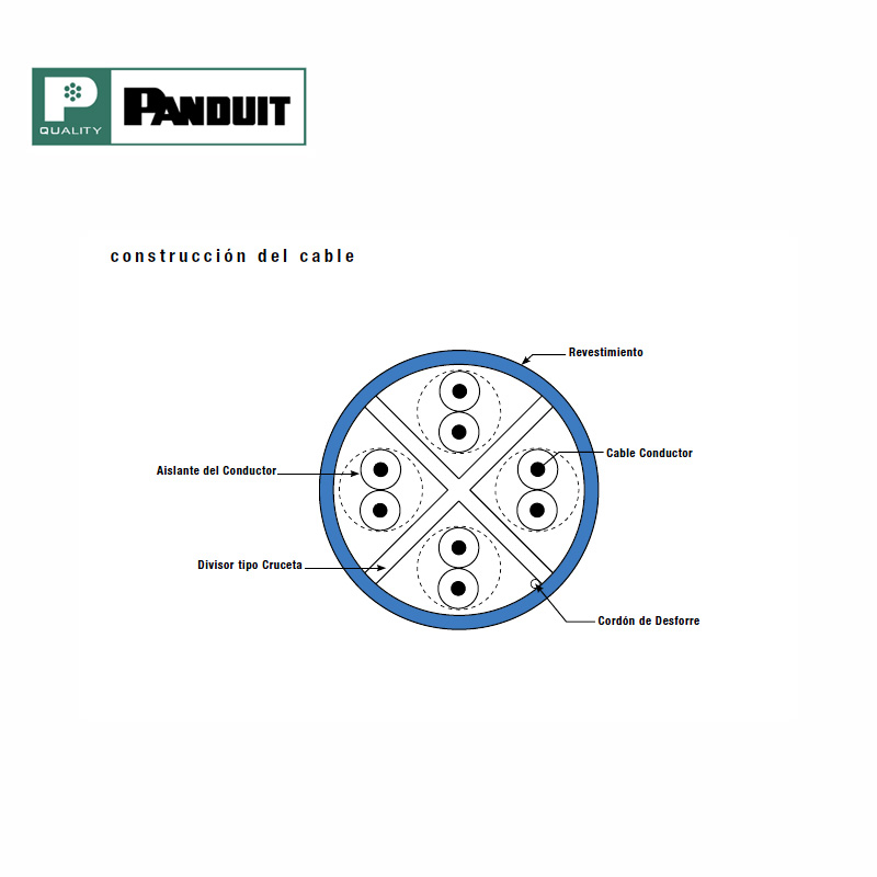 | Cumple las normas | Supera ISO 11801 clase E y ANSI/TIA-568.2-D categoría 6, IEC 61156-5, IEC 60332-1, IEC 60332-3-22, IEC 60754, IEC 61034, EN 50575: Euroclase Dca-s2-d2-a1; cumple con IEEE 802.3af, con IEEE 802.3at y con IEEE 802.3bt para aplicaciones de PoE; cumple con la normativa RoHS |