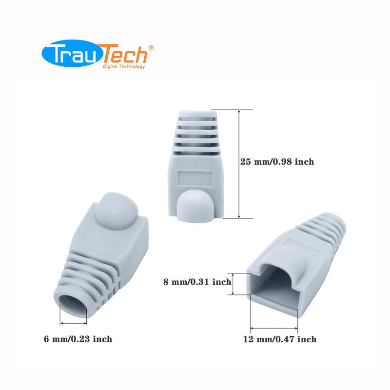 BOLSA X 100 FUNDAS CAPUCHAS PARA LOS CONECTORES RJ-45 RJ45 DE RED GRIS CLARO TRAUTECH