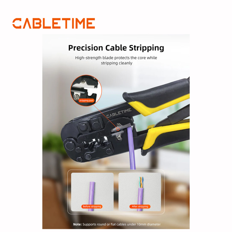 Equipada con cuchillas afiladas de alta resistencia, la herramienta pela las cubiertas de los cables limpiamente sin dañar los cables internos. Esta precisión garantiza un rendimiento constante y evita costosos daños en los cables durante la instalación.