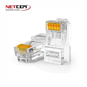 -Los Conectores RJ-45 CAT. 6 de Metal, permite que los cables pasen a través del conector de manera que los giros en cada par se pueden tirar más cerca de los contactos que los tapones convencionales.